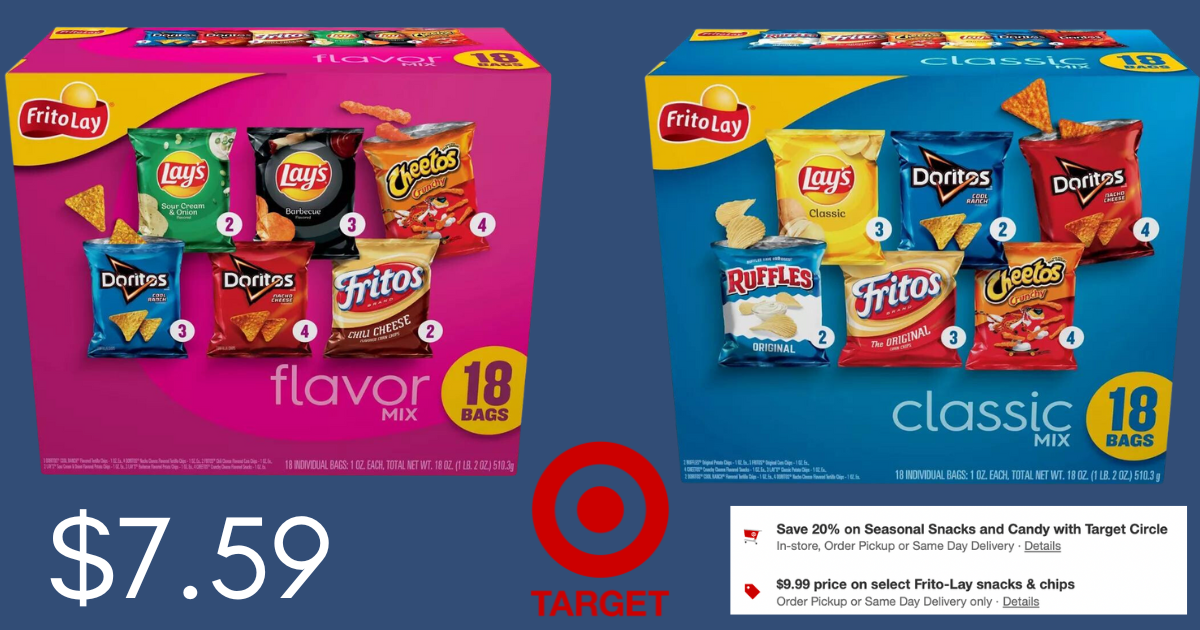 Target is offering great deals on Frito Lay variety packs, perfect for school lunches, snacks, and Halloween. Through October 14, a wide selection of Frito Lay packs are on sale for just $9.99 at Target stores and online.