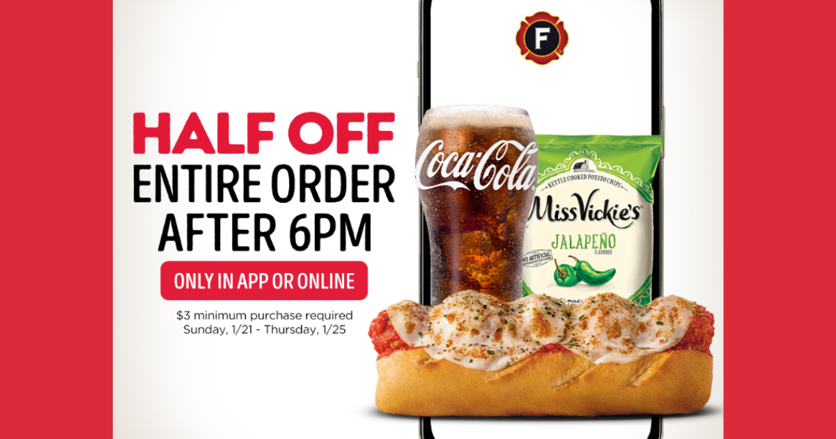 Until January 25th, 2024, you can avail yourself of an incredible deal. On all orders of $3 or more made through the app or online, you get to enjoy a whopping HALF OFF on your ENTIRE ORDER!