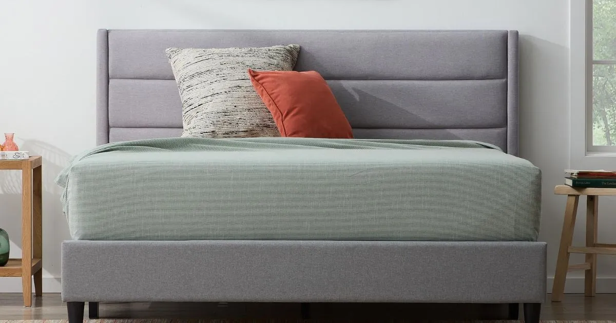 Transform your bedroom with the stylish and functional Rest Haven Renton Upholstered Channeled Platform Bed. This platform bed features a sleek design and comfortable upholstered headboard.