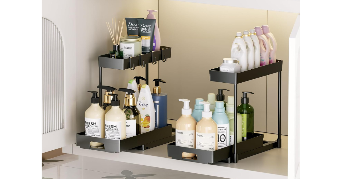 Transform your kitchen sink area with the Delamu 2-Pack L-Shape Under Sink Organizers. These versatile organizers provide efficient storage for cleaning supplies, toiletries, and more.