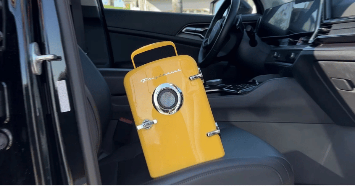 - Find Mini Cooler: Search for “Frigidaire Retro 6-Can Mini Cooler with Bluetooth.”