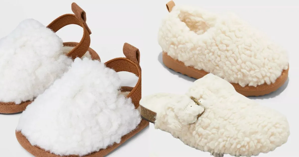 Keep your little ones’ feet warm and cozy with these adorable faux shearling slippers from Target.
